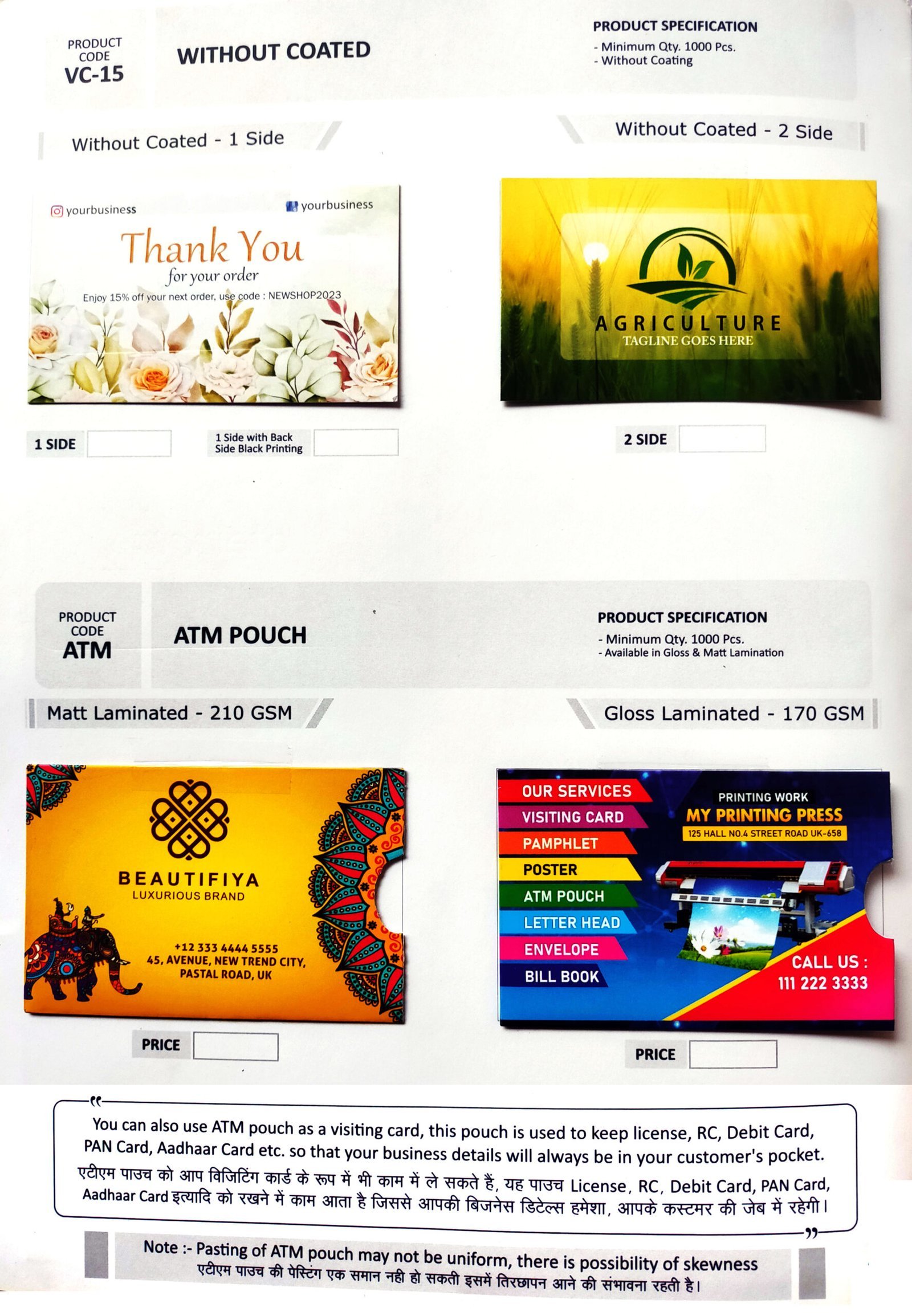 - कई तरह के फिनिशिंग विकल्प – जैसे मैट, ग्लॉसी, यूवी, एम्बॉसिंग वगैरह।